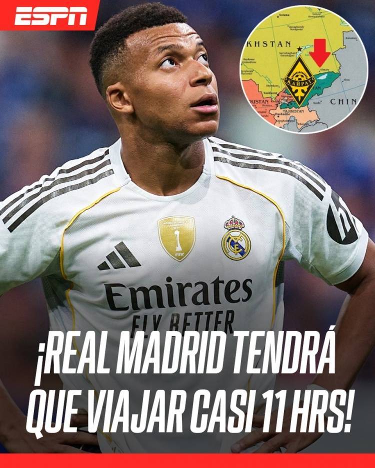 ESPN:皇马至少飞10小时50分钟才能抵达阿拉木图,跨越超8000公里